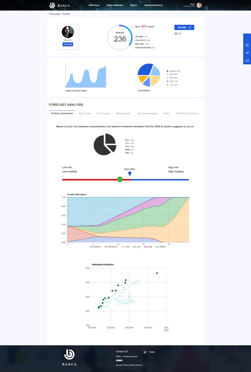 The BANCA platform serves the global cryptocurrency community. BANCA’s dynamic eco-chain uses AI and expert system that includes automatic management. The BANCA platform analyzes Big Data and delivers precise services tailored to the specific needs of our individual users.