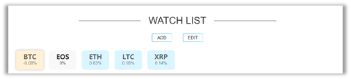 Once a user has registered and logged on to CoinUltra, all functions will be tailored to his/her personal needs. You may add any coins you would like to follow under ‘Watch List’ (shown below). Not only will the coin show up underneath with price/percentage return, all sorts of trading information will show up under ‘Favorite’ sections which spread all over CoinUltra. That information includes news flow, Twitter flow, price charts, market analysis, etc.